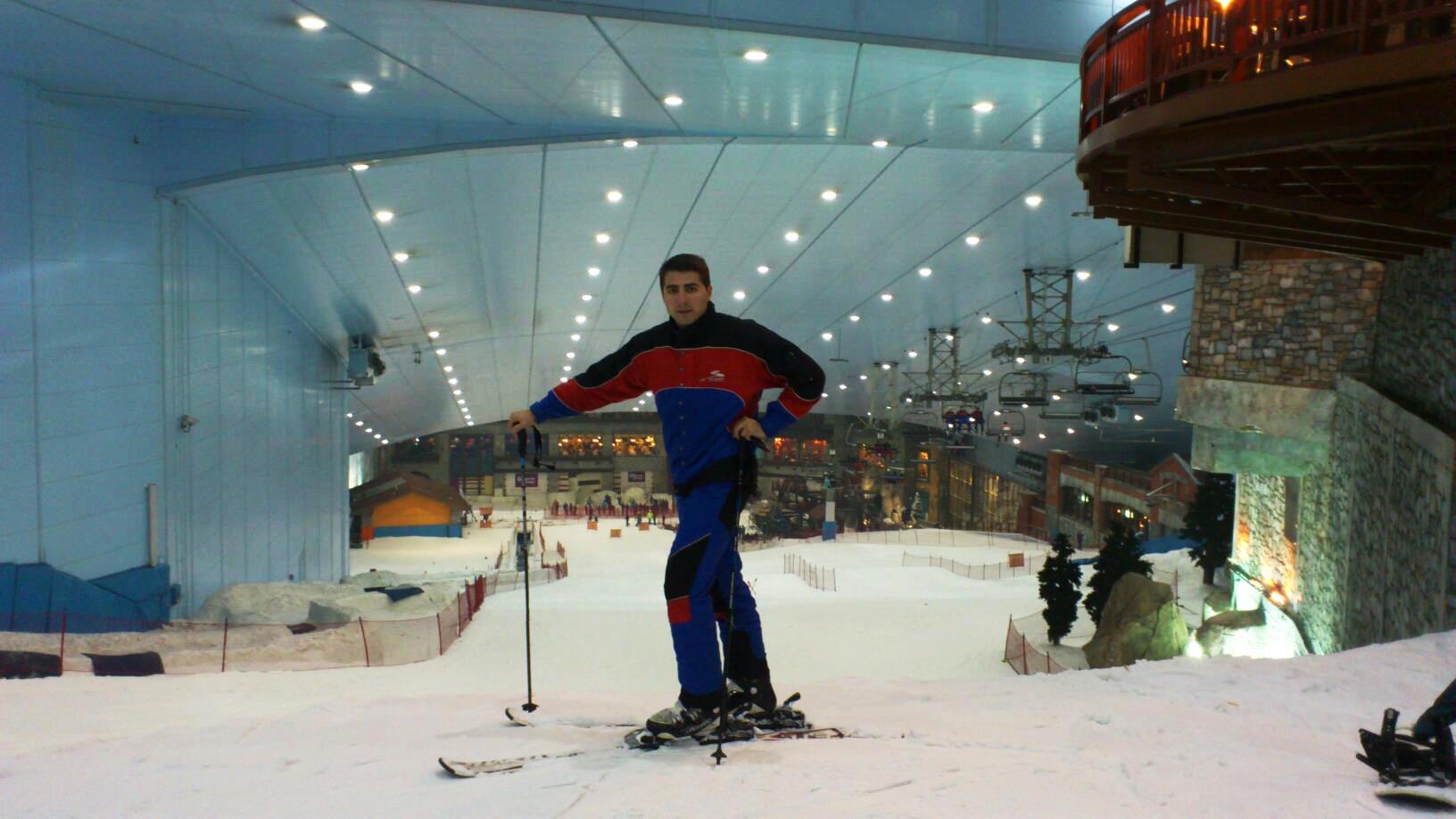 Skijalište je otvoreno 2005. godine, poseduje 85 metara visoku stazu koja se račva na 5 padina, koje su dužine u proseku 400m i različite su strmine tj težine. Skijalište poseduje tri žicare: jedan tanjir koji vas penje na vrh, jedan četvorosed takođe do vrha sa među stanicom I jedan lift za početnike tj. one koji uče da skijaju. Cela oblast koja je pod snegom iznosi 3.000 kvadratnih metara I obuhvata snow park , stene za penjanje, podzemne hodnike i tunele, stazu za bob I još drugih atrakcija. U Ski Dubaiju se nalaze I pingvini koji imaju svoj šou nekoliko puta dnevno. Što se tiče iznajmljivanja opreme sve je uključeno u cenu , sem kape I rukavica ( skije ili bord, jakna, ski pantalone pa čak I čarape ). Cena za 2 sata skijanja je oko 45 evra. Može se uzeti I dnevna karta koja je oko 70 evra.